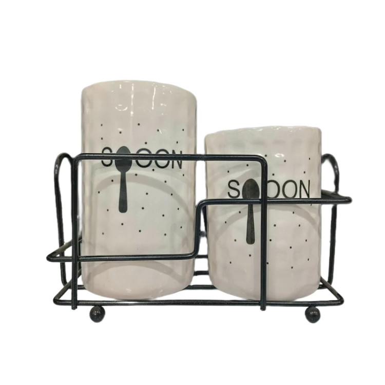 ☺️جا قاشقی دو تایی سرامیکی متال هوم