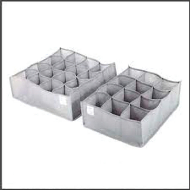 نظم دهنده های پارچه ای وسیله های پر کاربردی هستن که به نظم دهی کمد شما میتونن کمک کنند.تو کشویی 12 خانه بسته 2 عددی جهت نظم دادن به لباس زیر, شال, جوراب و ... در کشو است.ابعاد این کالا 35x27x11 است.